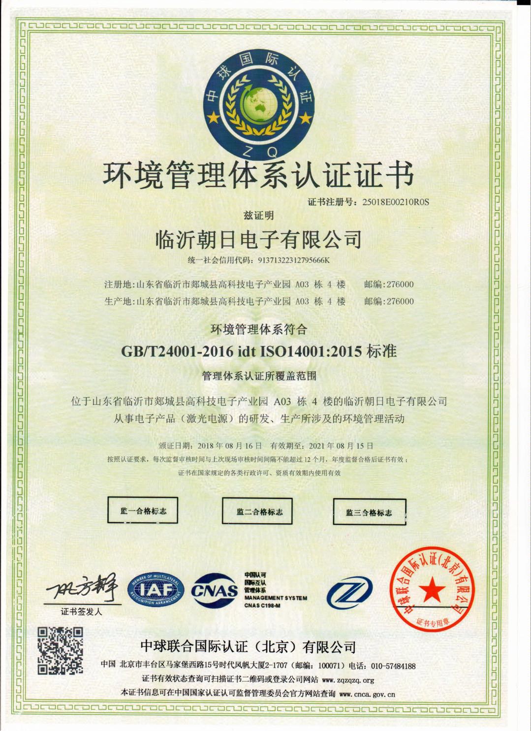 公司名:山東朝日電子有限公司 工廠地址:山東省臨沂市郯城高科技電子產業園A3棟4樓